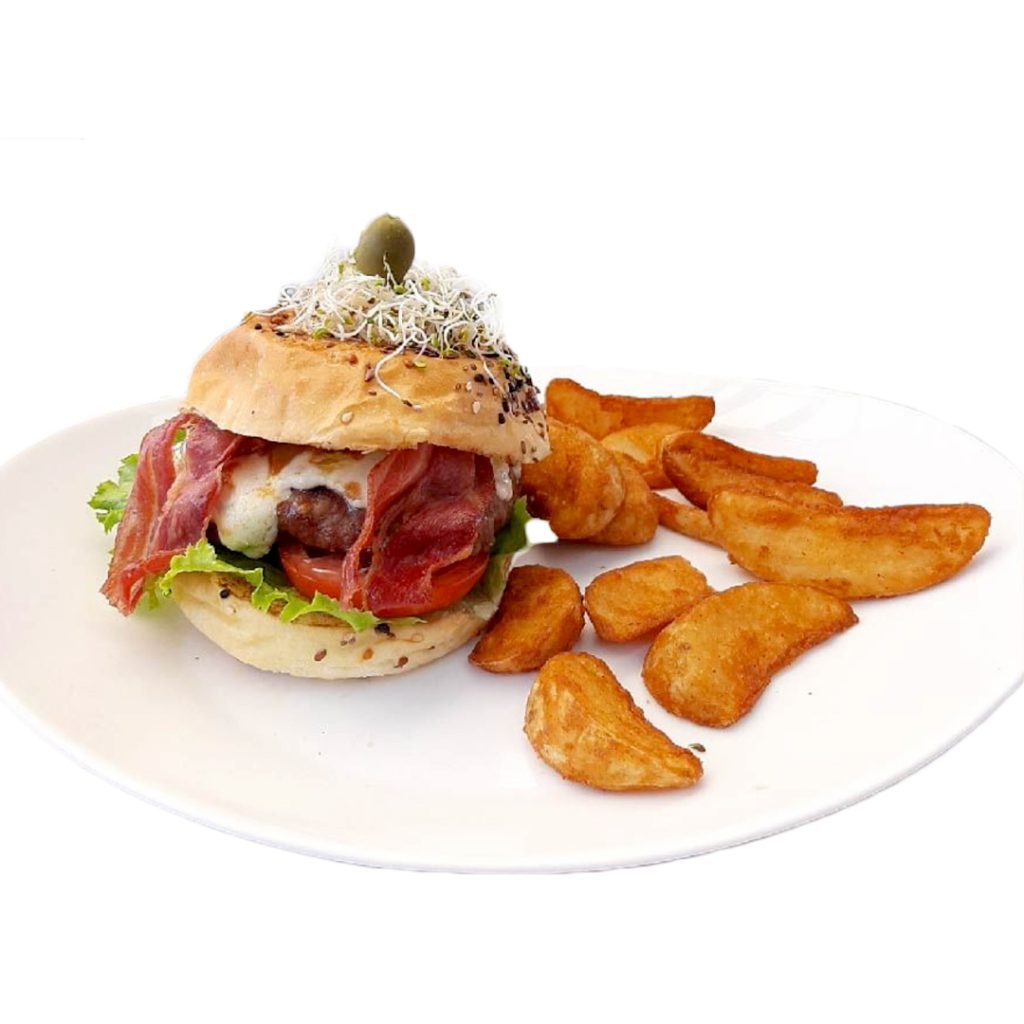 Torombolo Burguer: With ham, sausage, avocado and white cheese.
